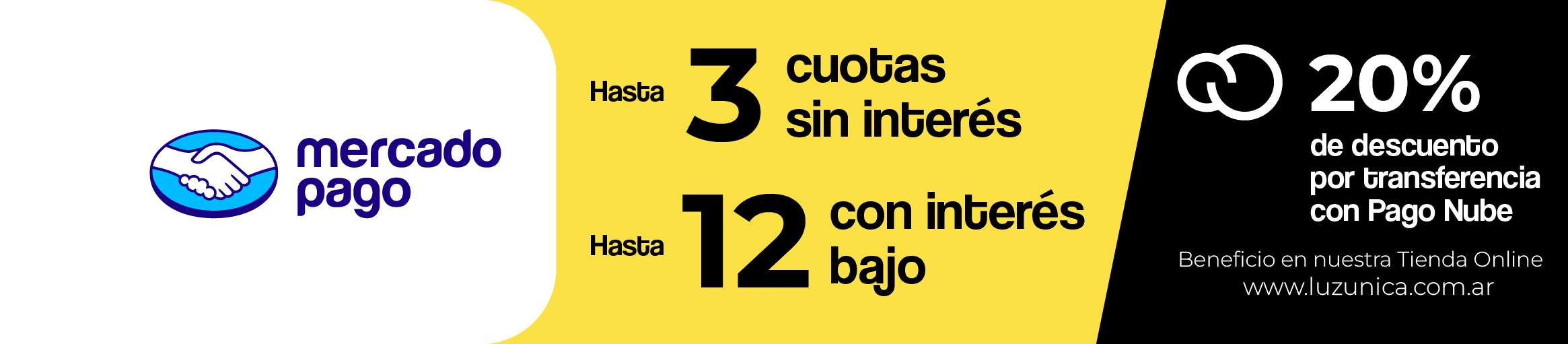Comprá de forma segura con Mercado Pago en 3 cuotas sin interés y 12 con bajo interés